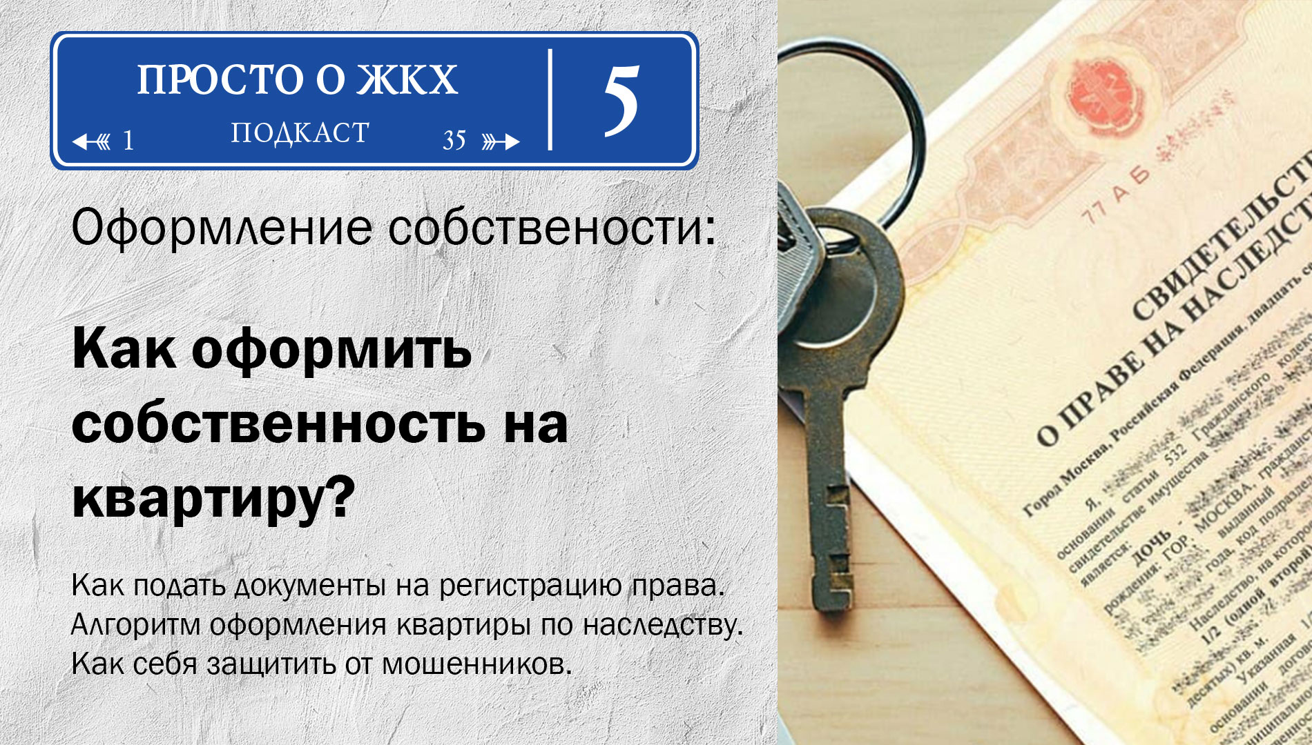 Выпуски подкаста Выпуск 5: Оформляем собственность на квартиру Инструкция: оформление при покупке, оформление наследства Read more ByРедакция подкаста 10.03.2021