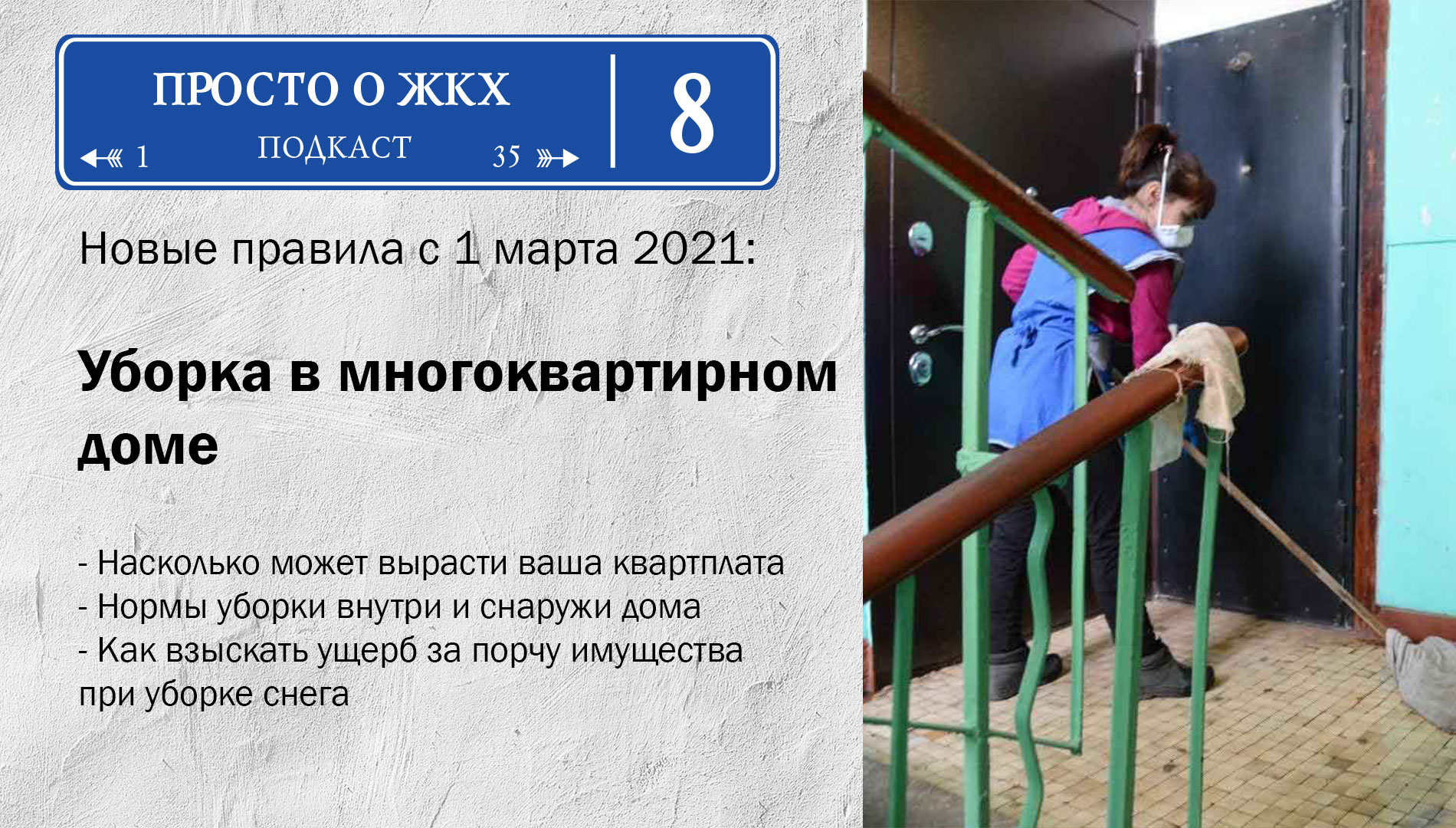 Выпуски подкаста Выпуск 8: Новые нормы уборки в многоквартирном доме Стоит ли ждать повышение квартплаты в 2021 году? Read more ByРедакция подкаста 31.03.2021