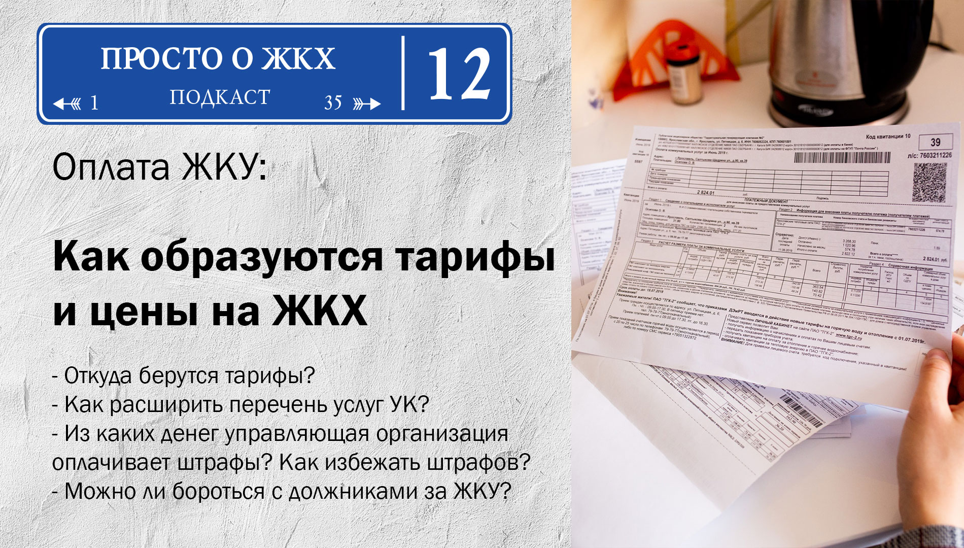 Выпуски подкаста Выпуск 12: Оплата ЖКУ. Как образуются тарифы и цены на обслуживание Разговор с Сергеем Шияновым, председателем одного из лучших московских ТСЖ "Перовская 22 к.2", на тему формирования платы за жилищные и коммунальные услуги. Read more ByРедакция подкаста 26.04.2021