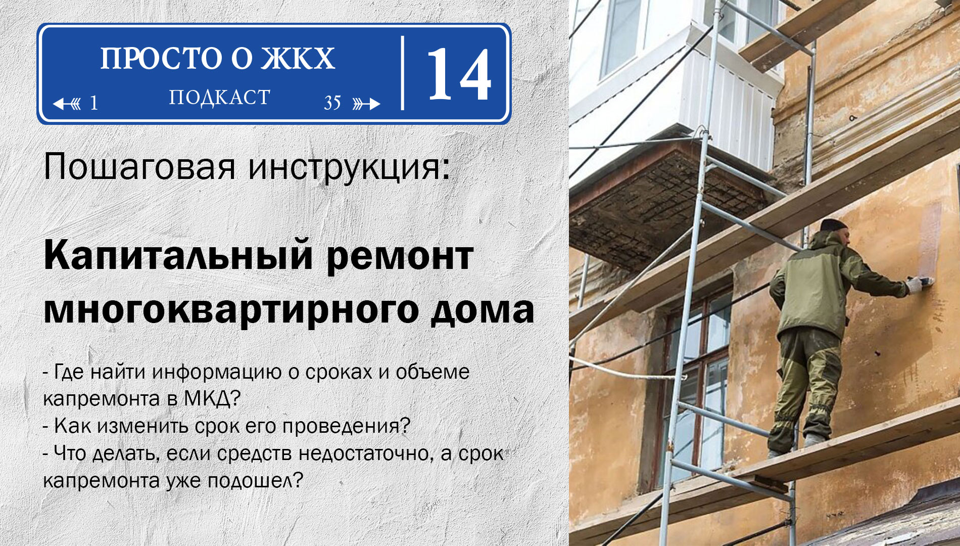 Выпуски подкаста Выпуск 14: Капитальный ремонт многоквартирного дома. Часть 1 Планирование и финансирование работ. Read more ByРедакция подкаста 14.05.2021